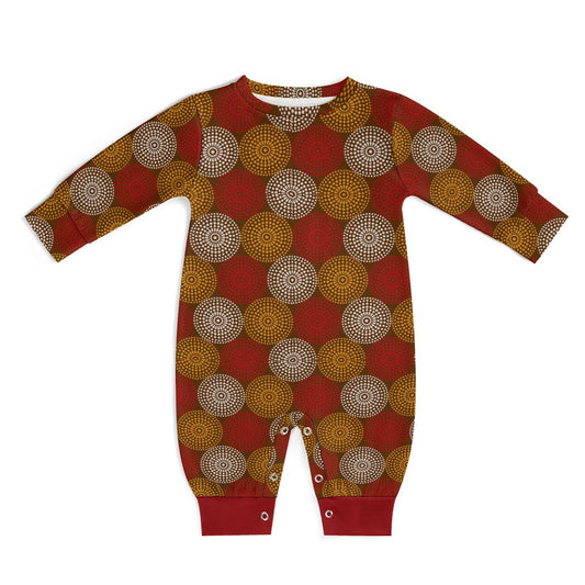 Maroon Ankara Wheel Pattern Baby Jumpsuit