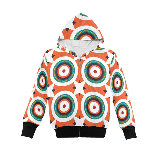 Little Kid's Ankara Circles & Star Print Orange Hoodie
