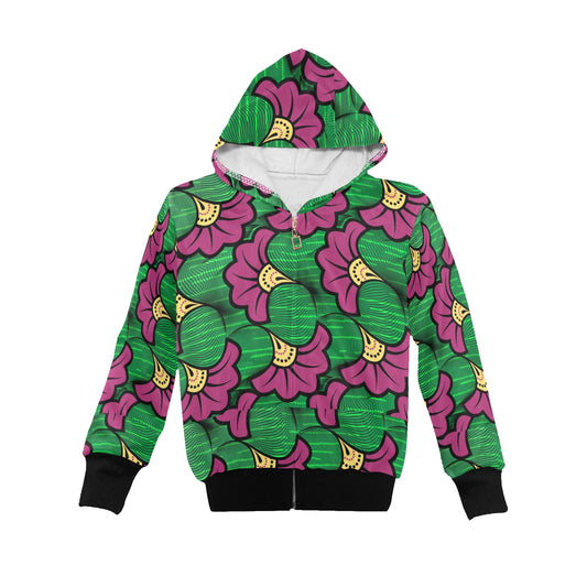 Big Kid's Ankara Purple Flower Print Green Hoodie