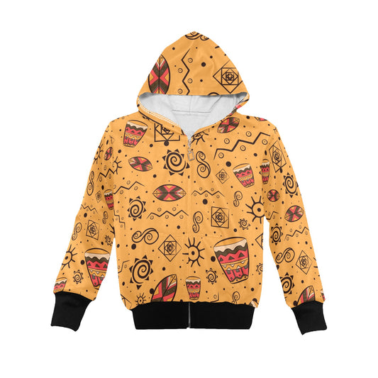 Little Kid's African Symbols Print Yellow Hoodie