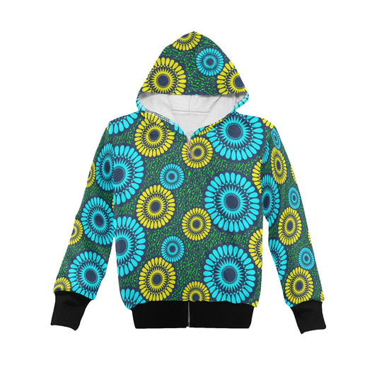 Little Kid's Ankara Flower Print Green Hoodie
