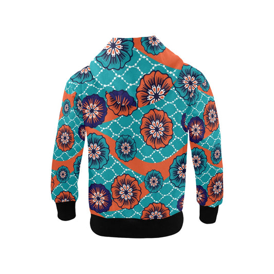 Big Kid's Ankara Flower Print Orange & Blue Hoodie