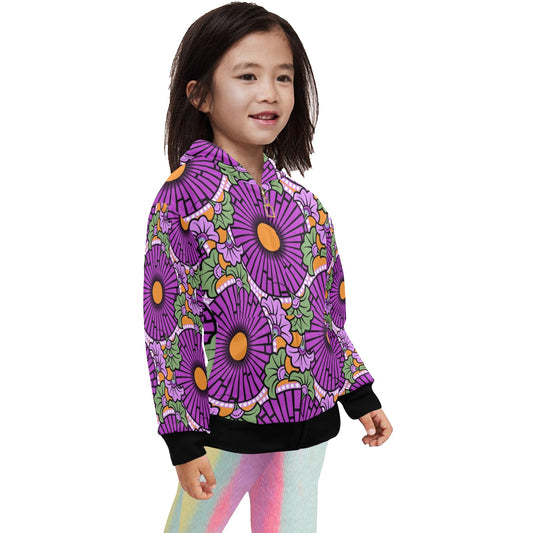 Little Kid's Ankara Flower Print Purple Hoodie