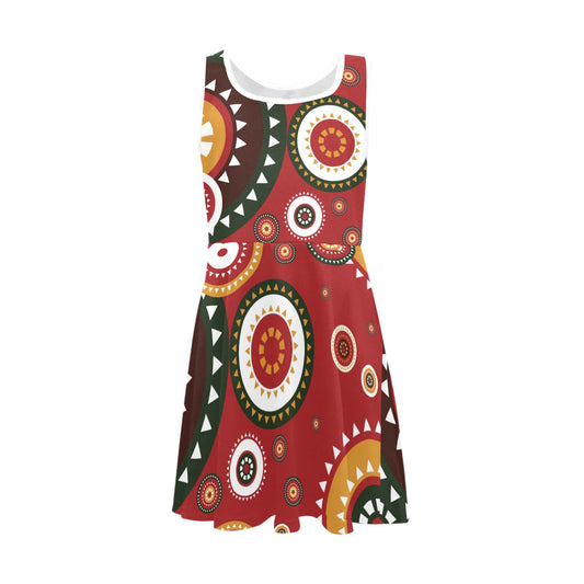 Abstract Multicolor Wheel African Pattern Girl's Sleeveless Dress