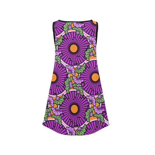 Purple Flowers Ankara Pattern Girl's Sleeveless Dress